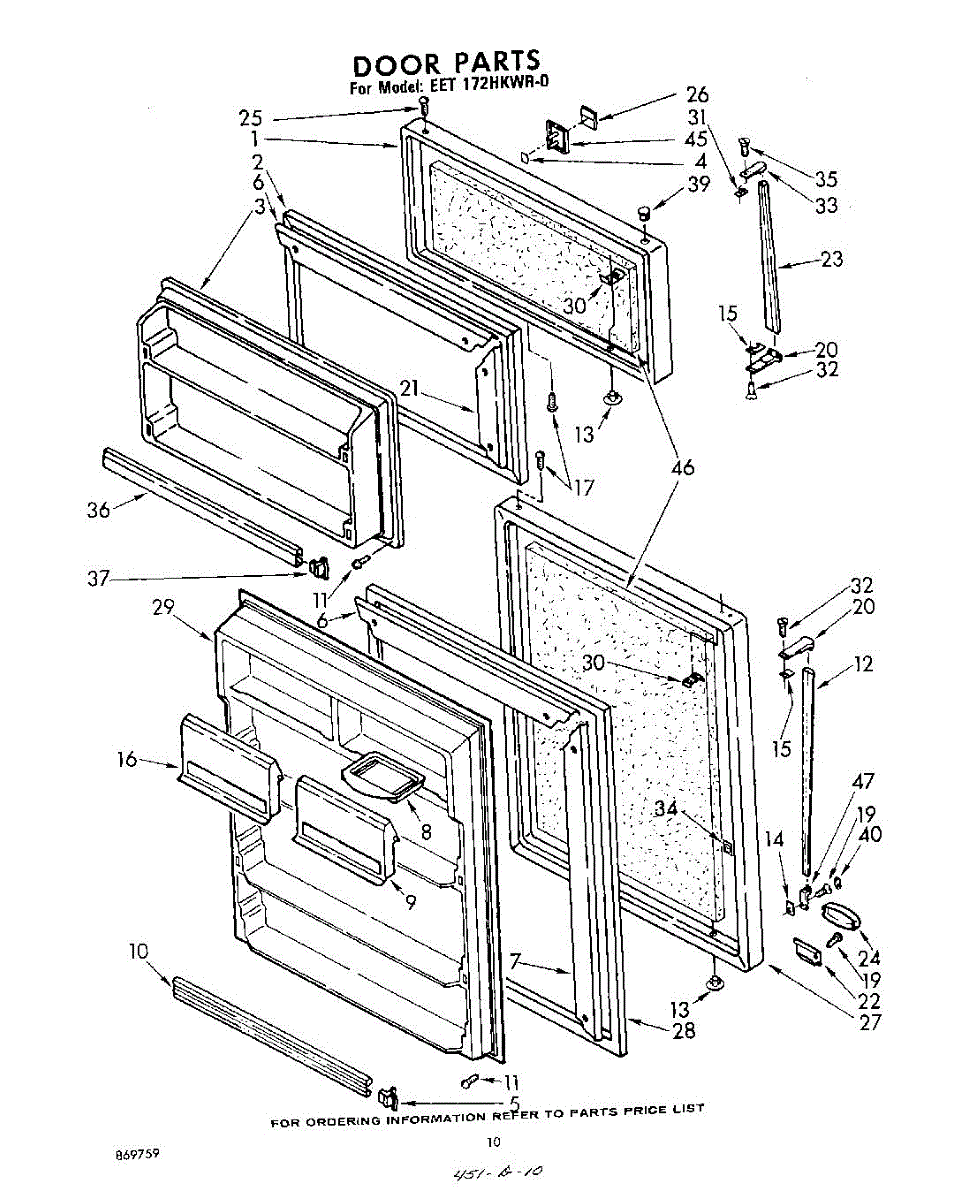 Parts for Whirlpool EET172HKWR0: 10 - Door Parts