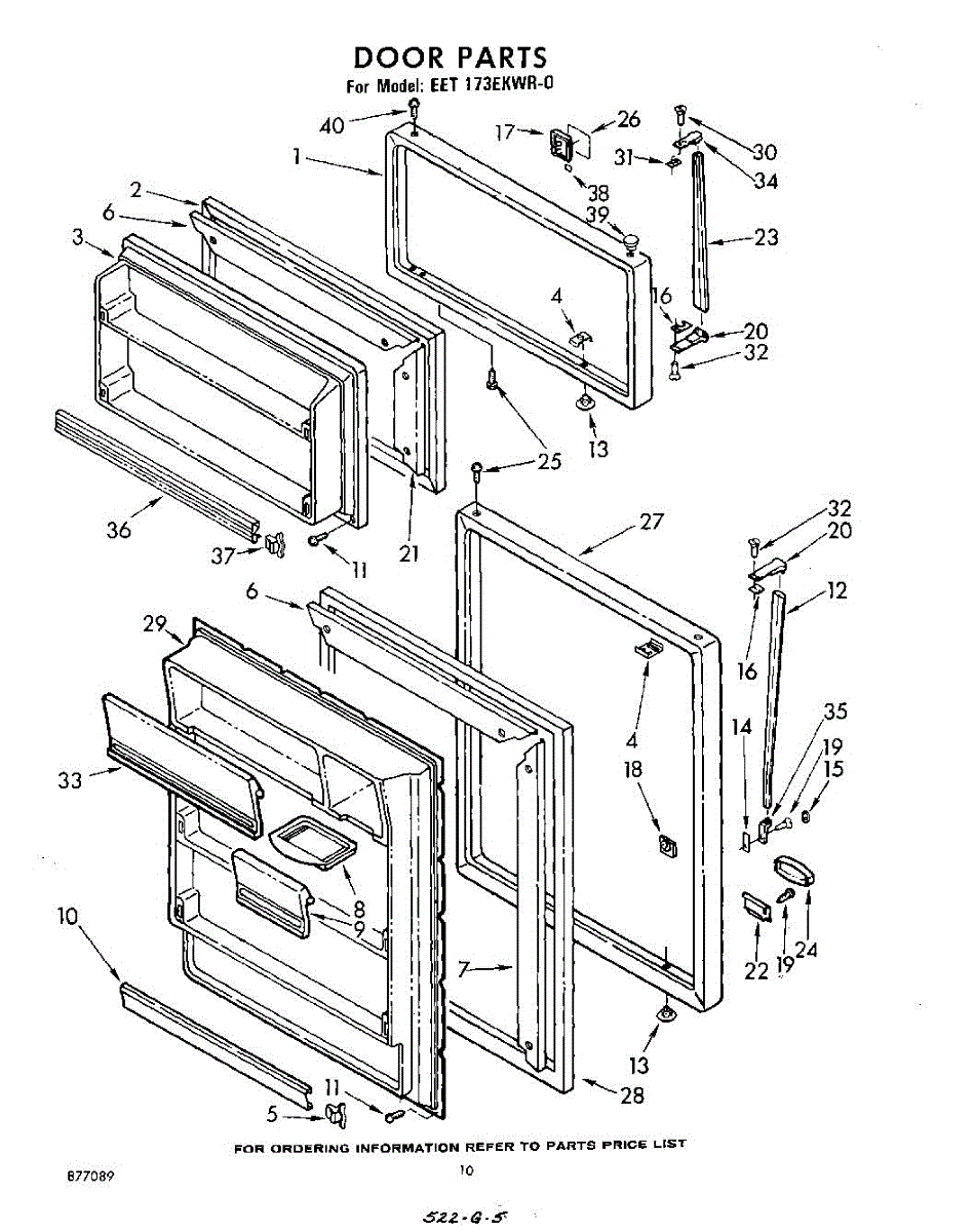 Parts for Whirlpool EET173EKWR0: 10 - Door Parts
