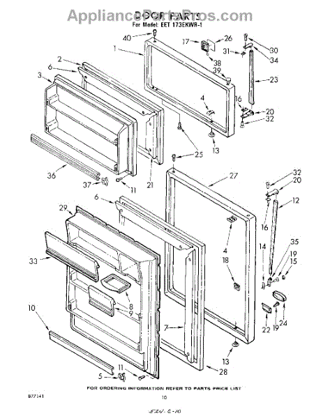 Parts for Whirlpool EET173EKWR1: 10 - Door Parts