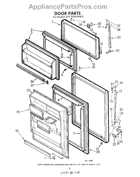 Parts for Whirlpool EET201EKWR0: 10 - Door Parts