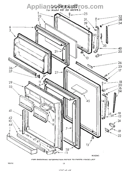 Parts for Whirlpool EET201MKWR0: 10 - Door Parts
