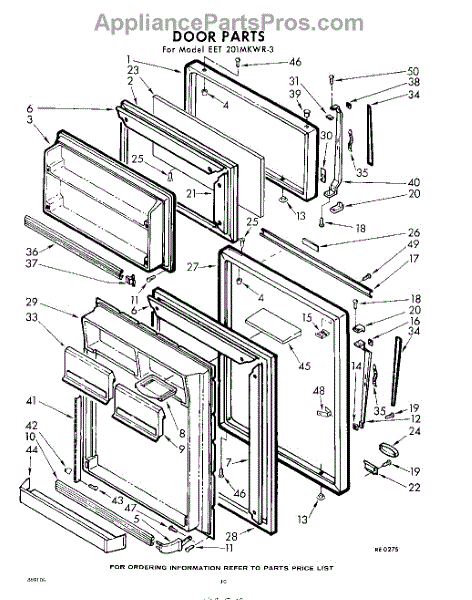 Parts for Whirlpool EET201MKWR3: 10 - Door Parts