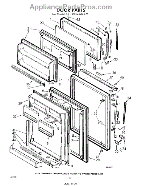 Parts for Whirlpool EET201MMWR2: 10 - Door Parts