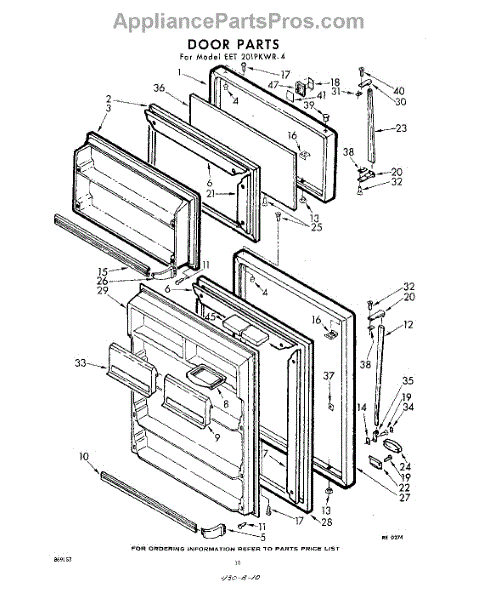 Parts for Whirlpool EET201PKWR4: 10 - Door Parts