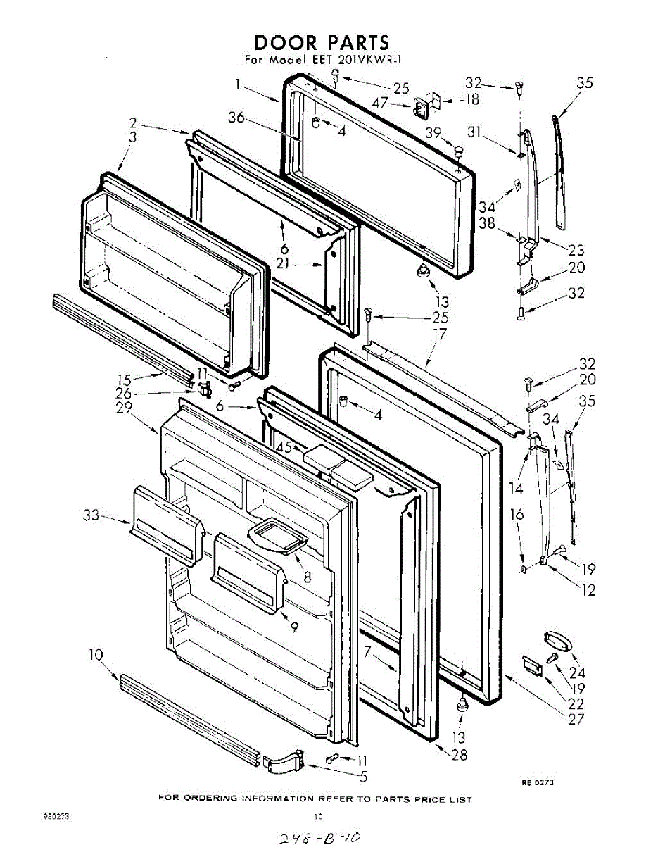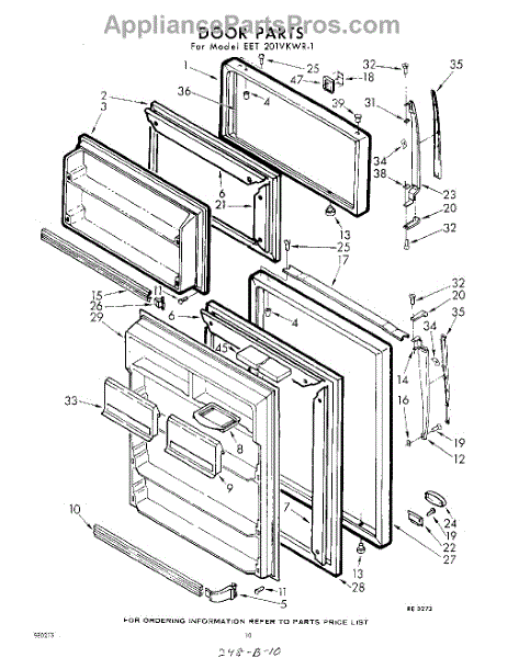Parts for Whirlpool EET201VKWR1: 10 - Door Parts