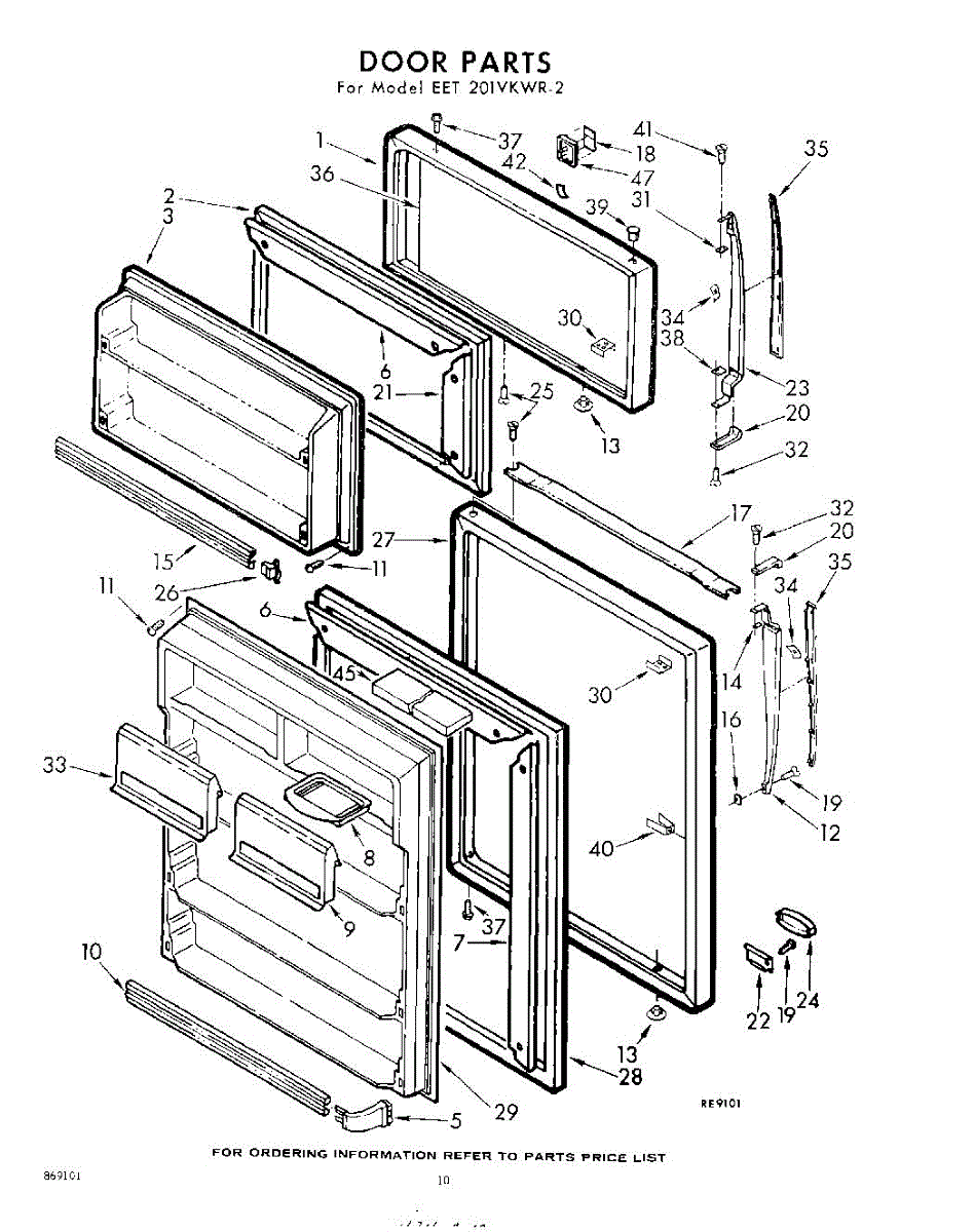 Parts for Whirlpool EET201VKWR2: 10 - Door Parts