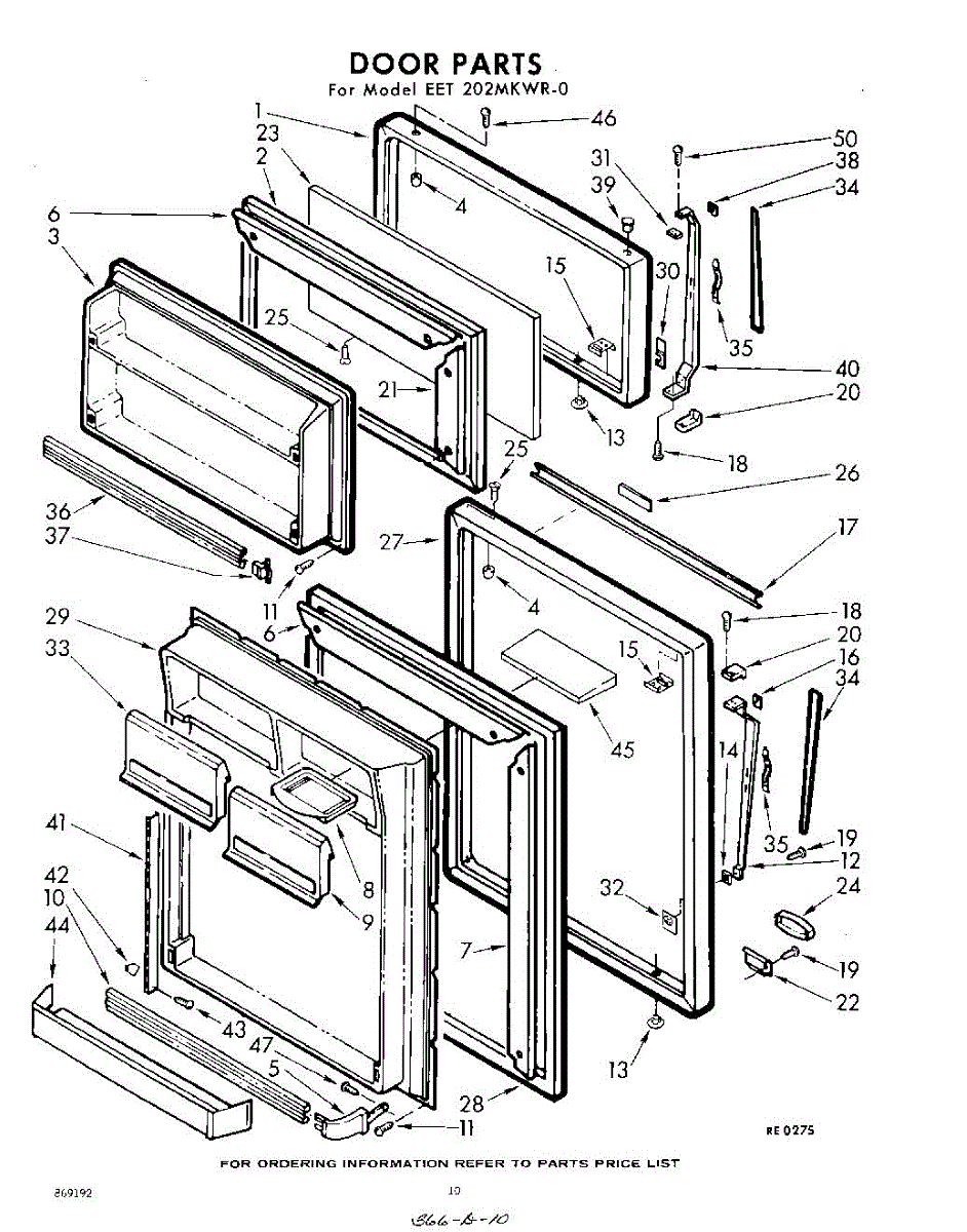 Parts for Whirlpool EET202MKWR0: 10 - Door Parts