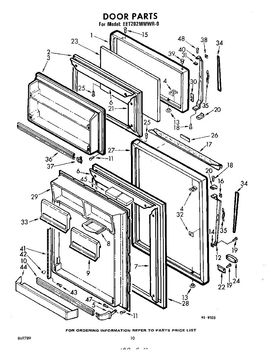 Parts for Whirlpool EET202MMWR0: 10 - Door Parts