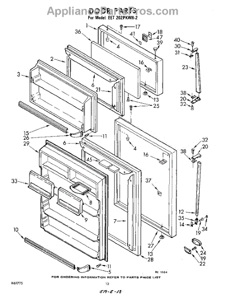 Parts for Whirlpool EET202PKWR2: 10 - Door Parts
