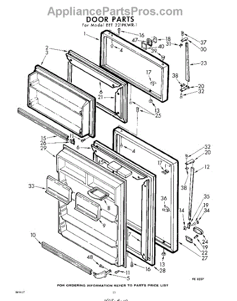 Parts for Whirlpool EET221PKWR1: 10 - Door Parts