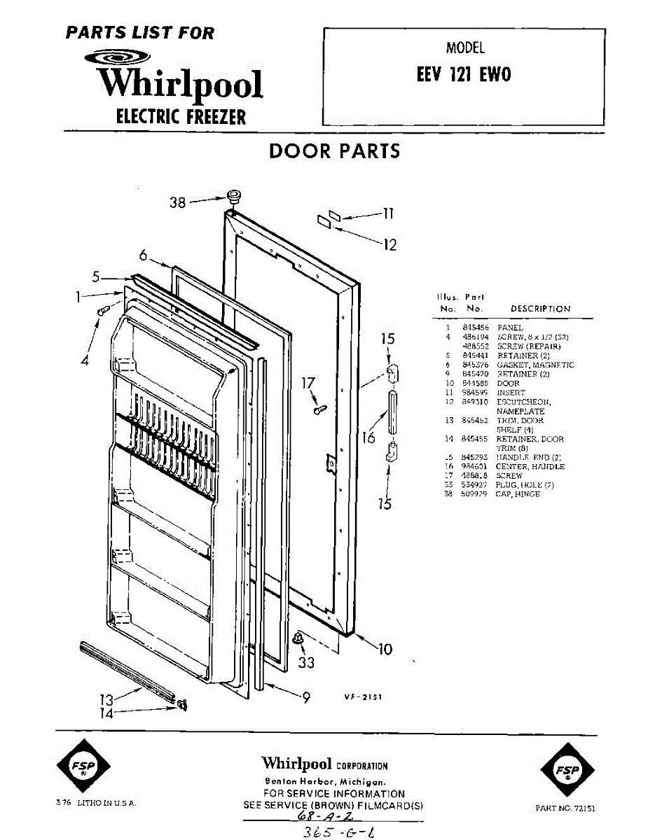 Parts for Whirlpool EEV121EW0: 01 - Door Parts