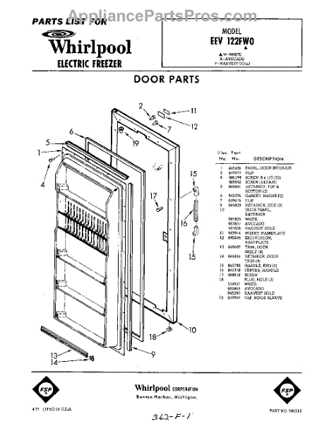 Parts for Whirlpool EEV122FW0: 01 - Door Parts