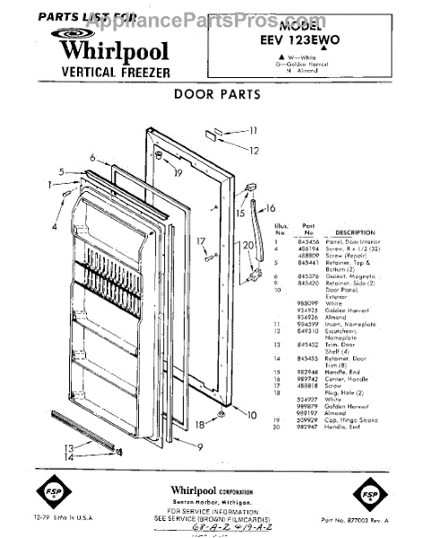 Parts for Whirlpool EEV123EW0: 01 - Door Parts