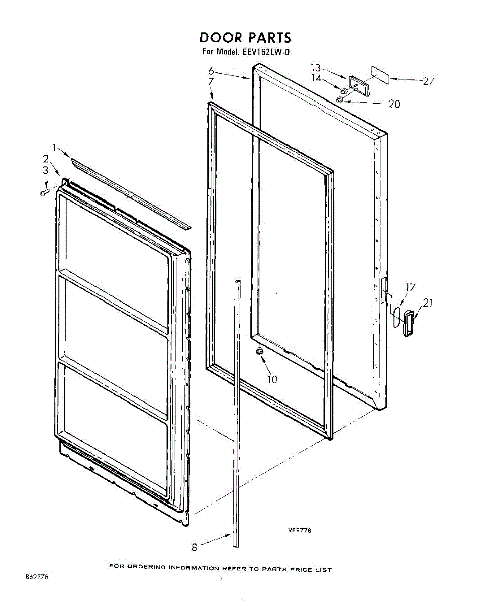 Parts for Whirlpool EEV162LW0: 04 - Door Parts