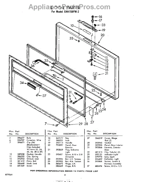 Parts for Whirlpool EHH150FW2: 04 - Door Parts