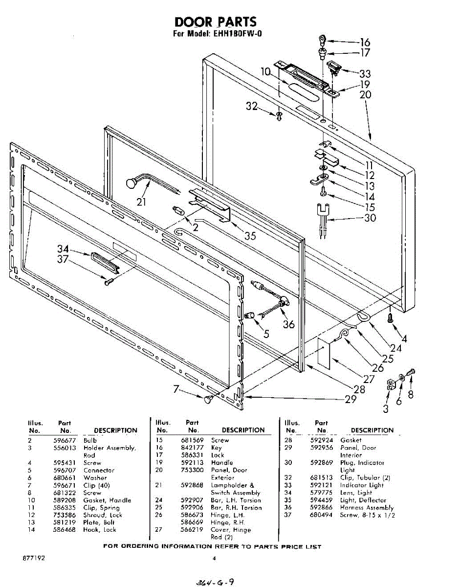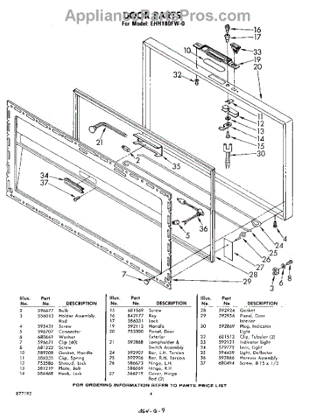 Parts for Whirlpool EHH180FW0: 04 - Door Parts