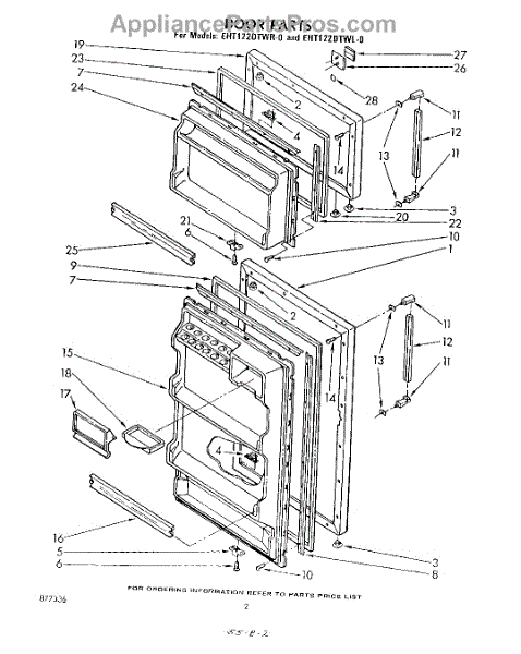 Parts for Whirlpool EHT122DTWR0: 02 - Door Parts