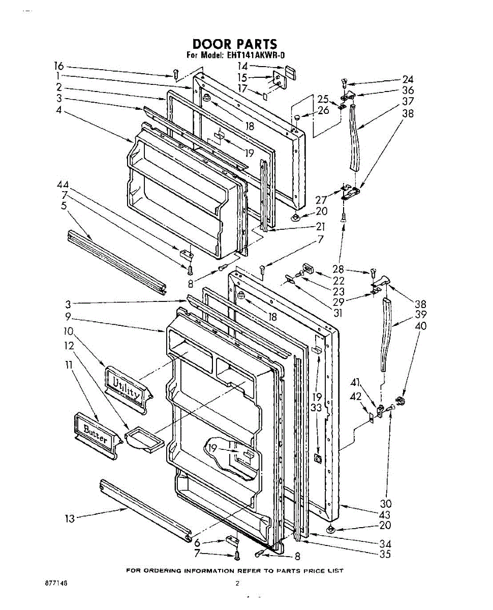 Parts for Whirlpool EHT141AKWR0: 02 - Door Parts