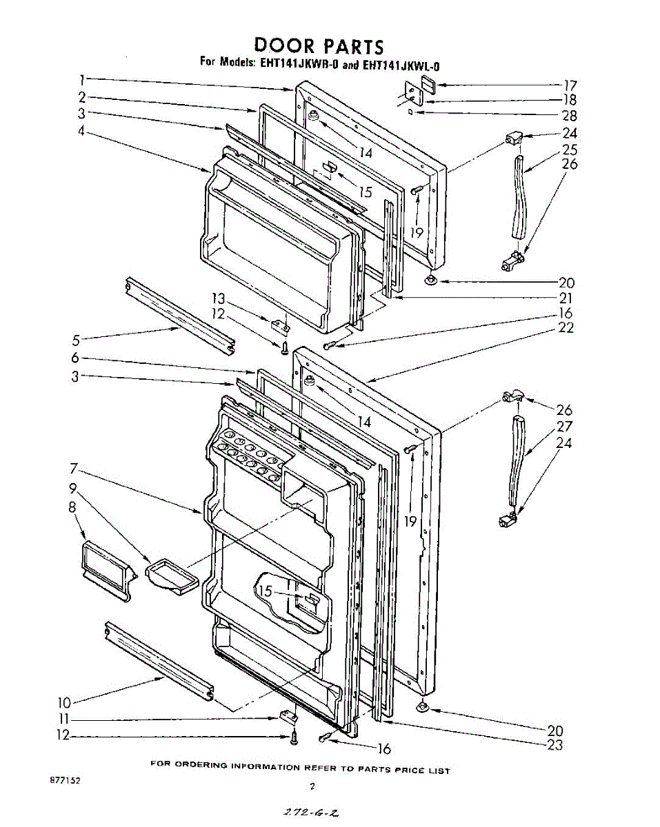 Parts for Whirlpool EHT141JKWR0: 02 - Door Parts