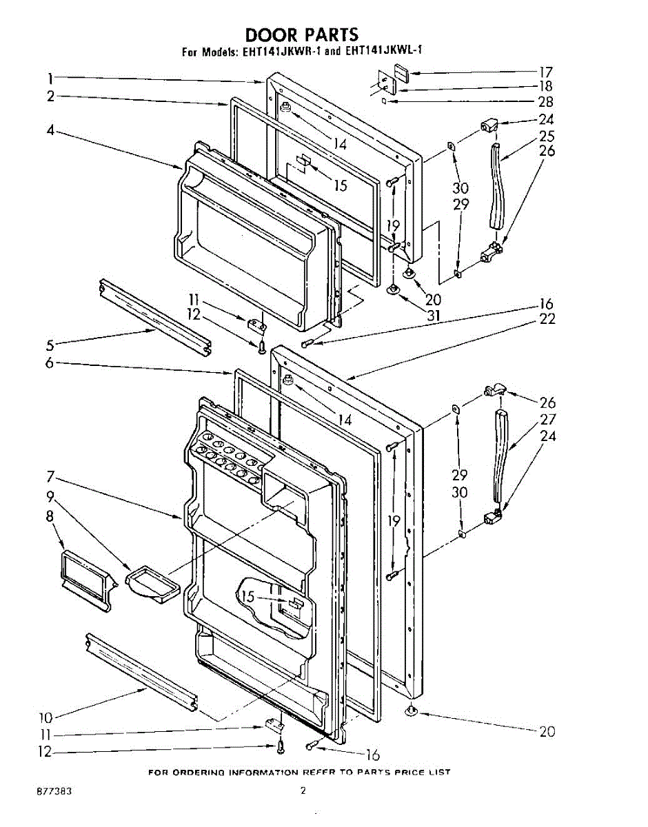 Parts for Whirlpool EHT141JKWR1: 02 - Door Parts