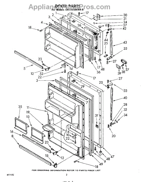 Parts for Whirlpool EHT161AKWR0: 02 - Door Parts
