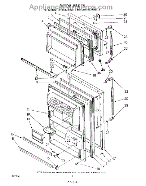 Parts for Whirlpool EHT161JMWR2: 02 - Door Parts