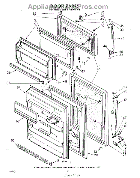Parts for Whirlpool EHT171HKWR1: 10 - Door Parts