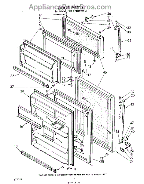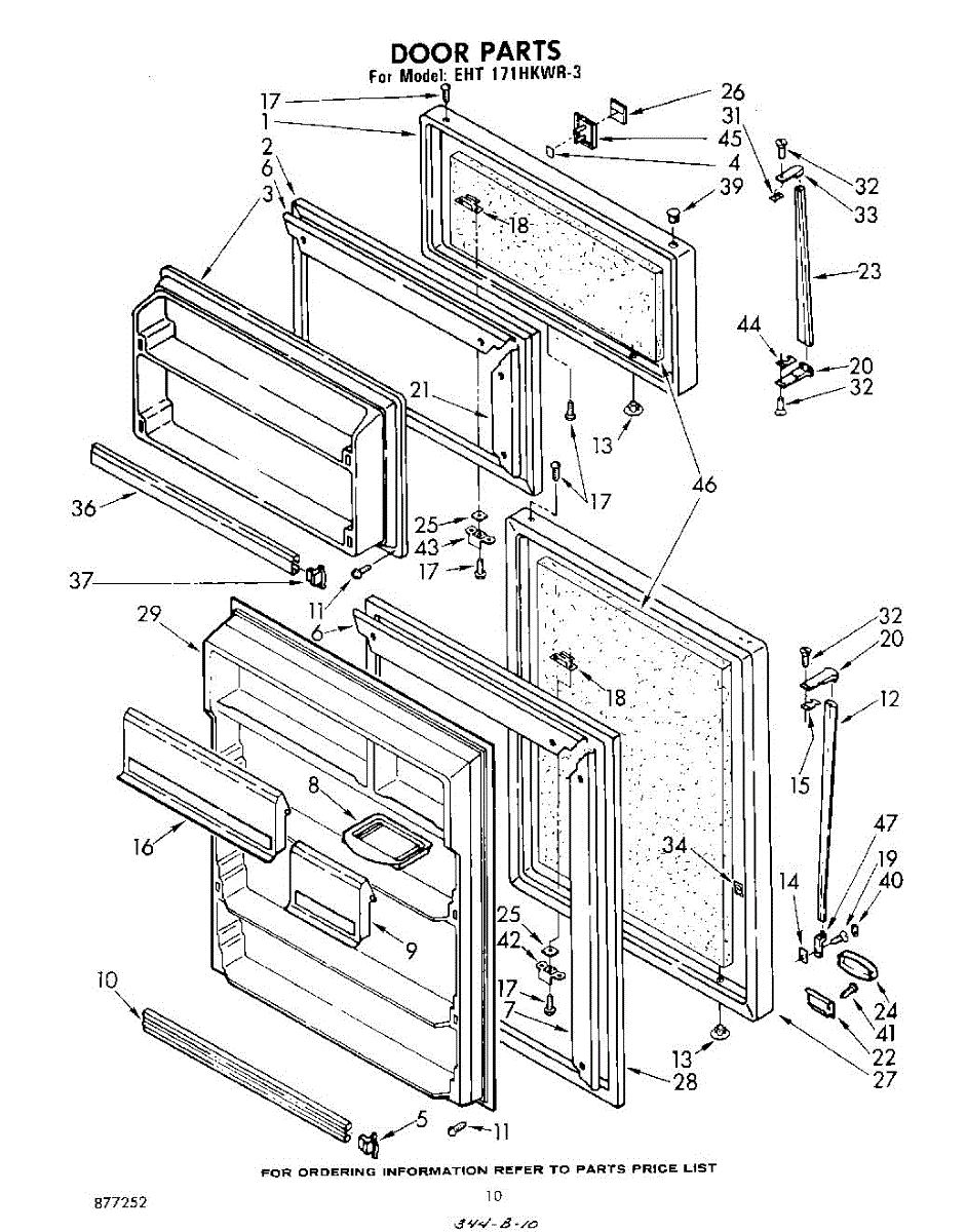 Parts for Whirlpool EHT171HKWR3: 10 - Door Parts