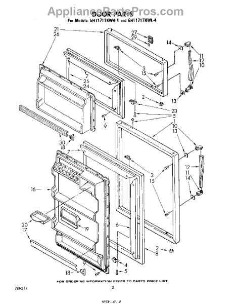 Parts for Whirlpool EHT171TKWR4: 02 - Door Parts