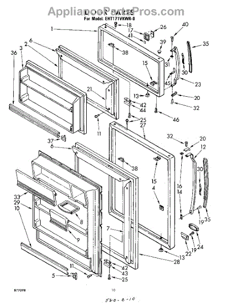 Parts for Whirlpool EHT171VKWR0: 10 - Door Parts