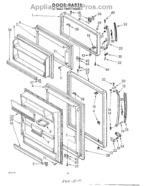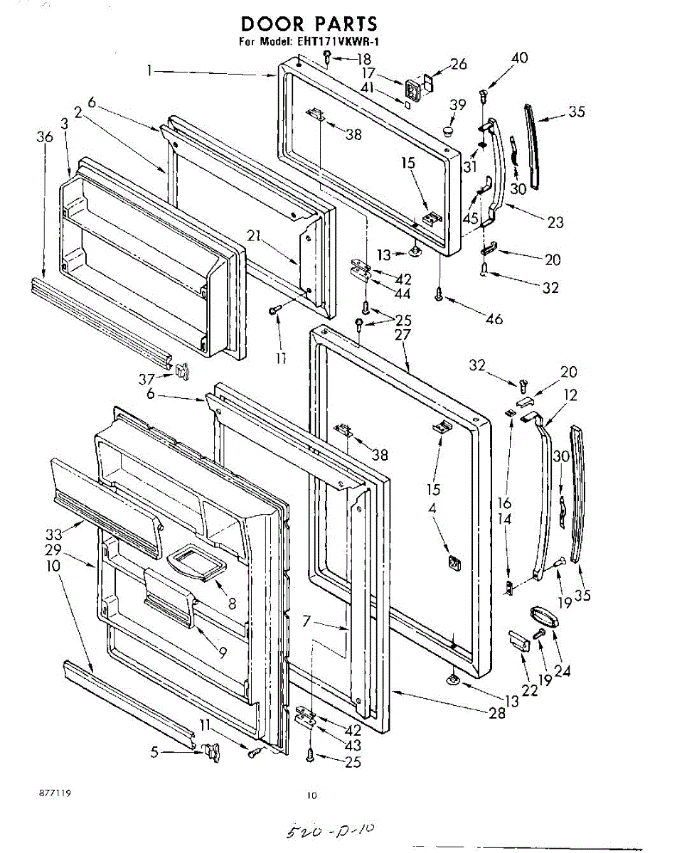Parts for Whirlpool EHT171VKWR1: 10 - Door Parts