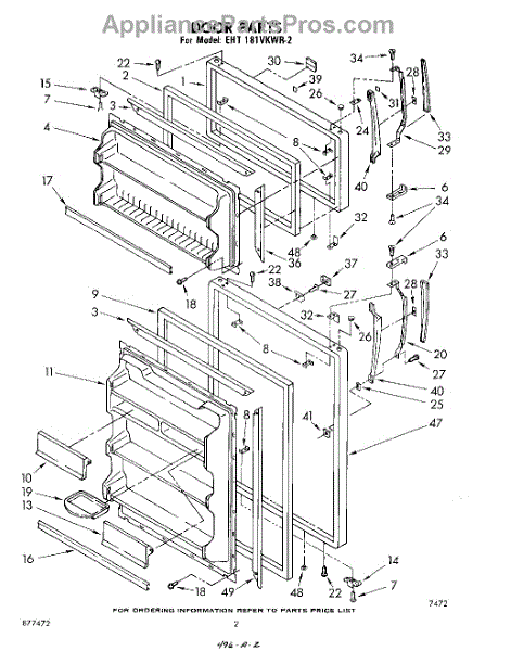 Parts for Whirlpool EHT181VKWR2: 02 - Door Parts