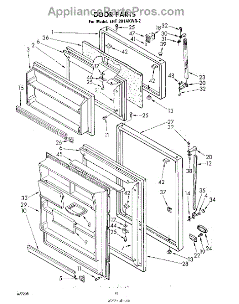Parts for Whirlpool EHT201AKWR2: 10 - Door Parts