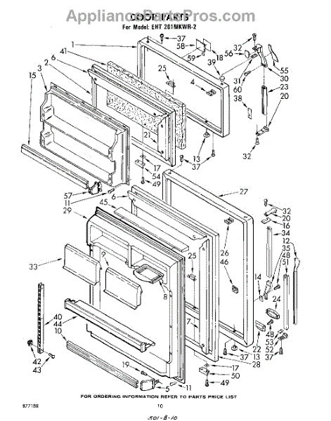 Parts for Whirlpool EHT201MKWR2: 10 - Door Parts