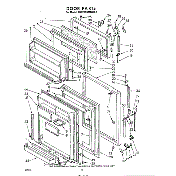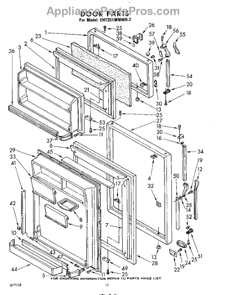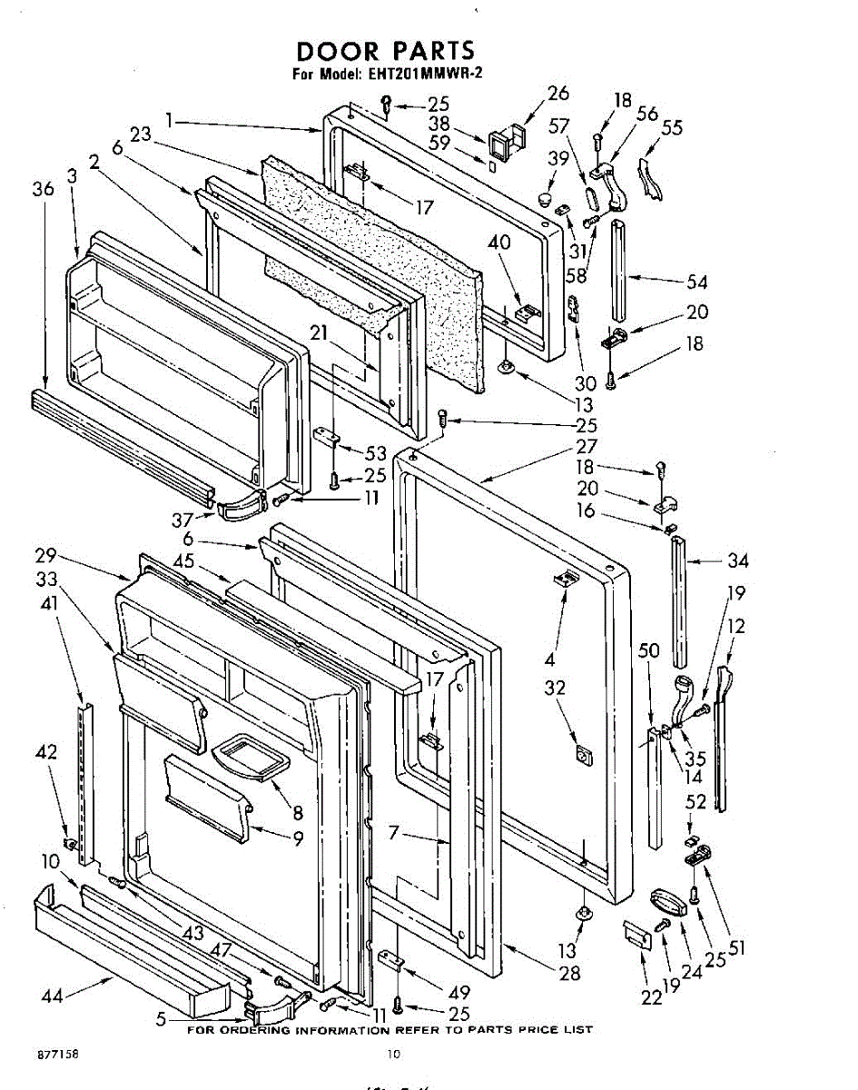 Parts for Whirlpool EHT201MMWR2: 10 - Door Parts