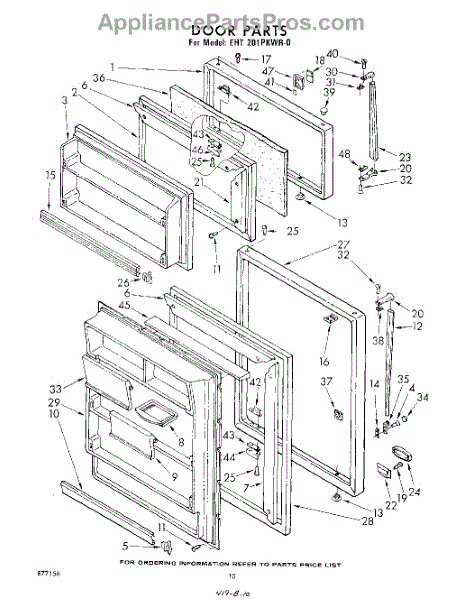 Parts for Whirlpool EHT201PKWR0: 10 - Door Parts
