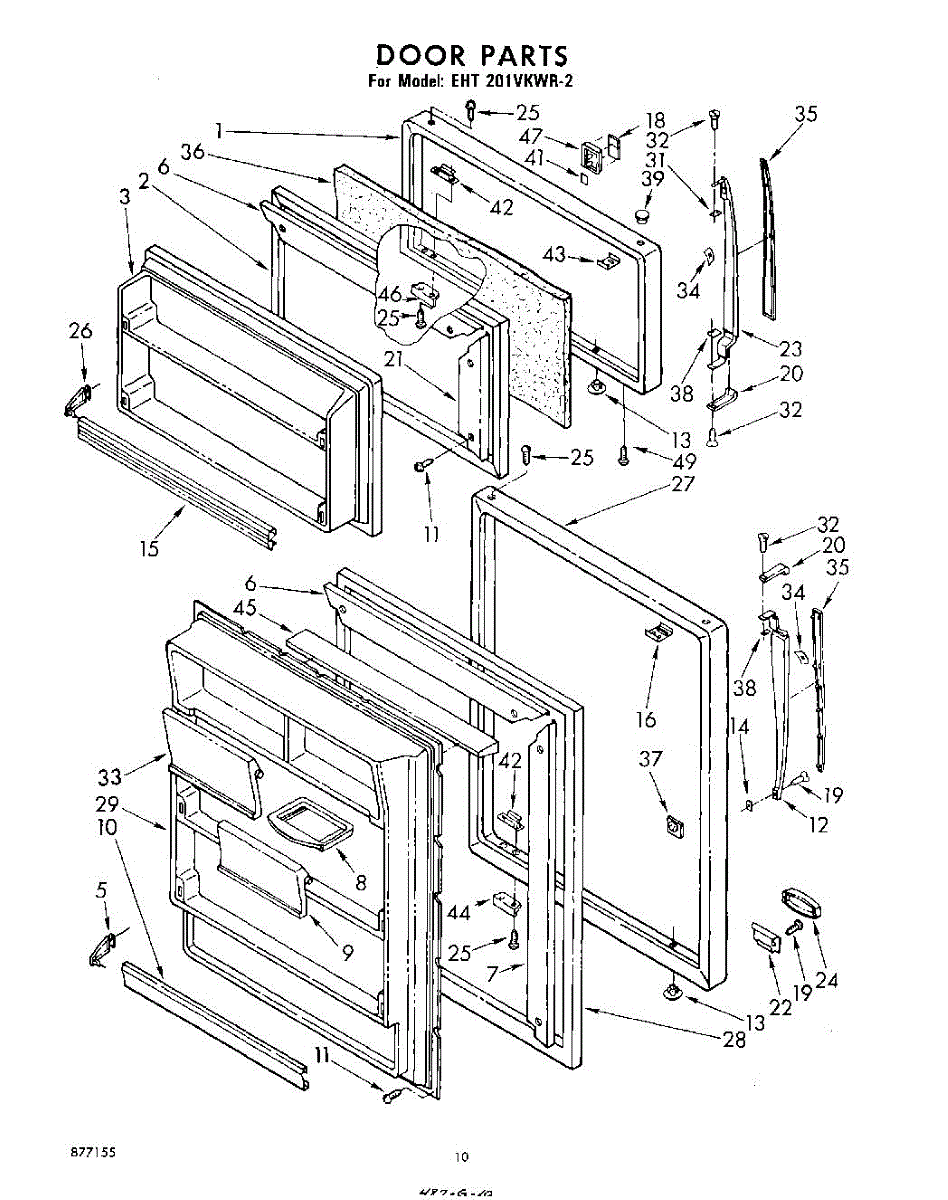 Parts for Whirlpool EHT201VKWR2: 10 - Door Parts