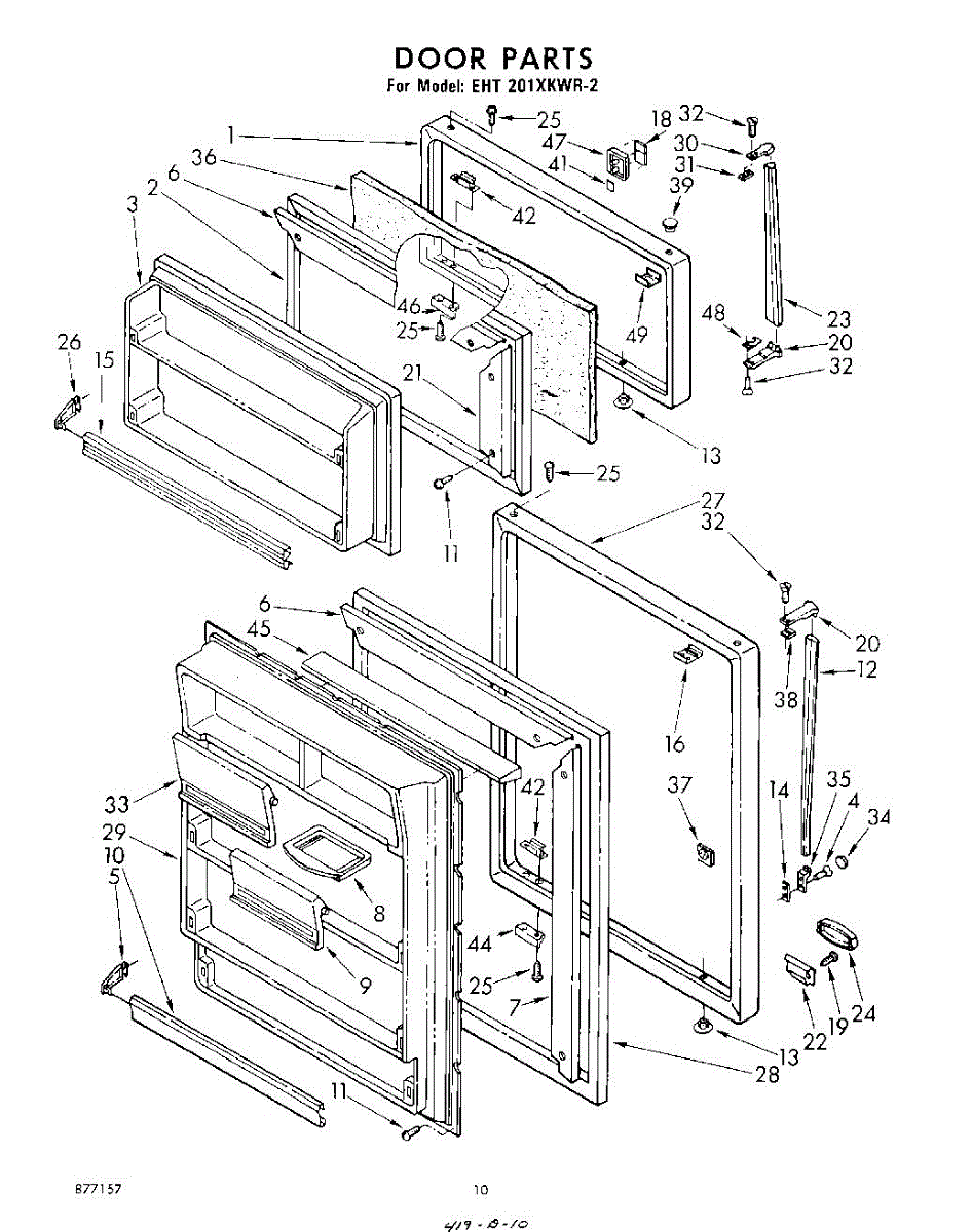 Parts for Whirlpool EHT201XKWR2: 10 - Door Parts
