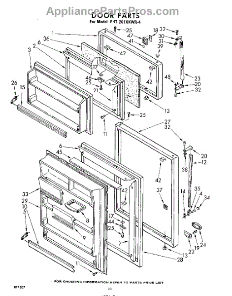 Parts for Whirlpool EHT201XKWR4: 10 - Door Parts