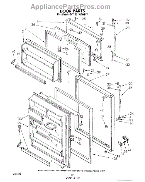 Parts for Whirlpool EHT201XKWR7: 10 - Door Parts