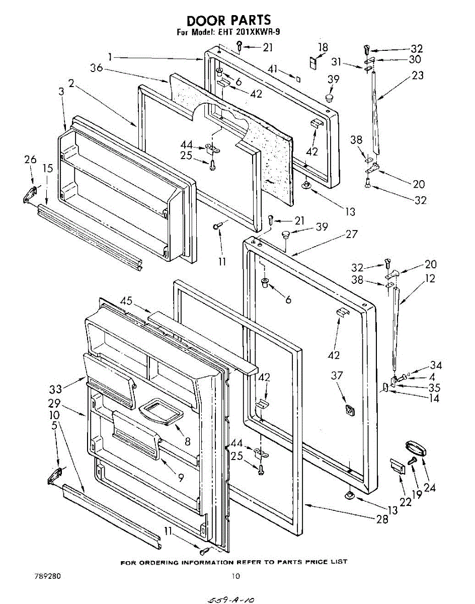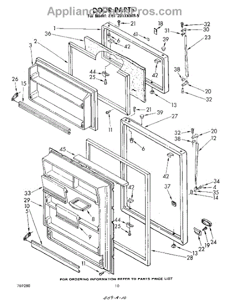 Parts for Whirlpool EHT201XKWR9: 10 - Door Parts