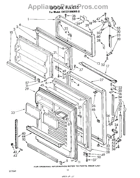 Parts for Whirlpool EHT221MKWR0: 10 - Door Parts