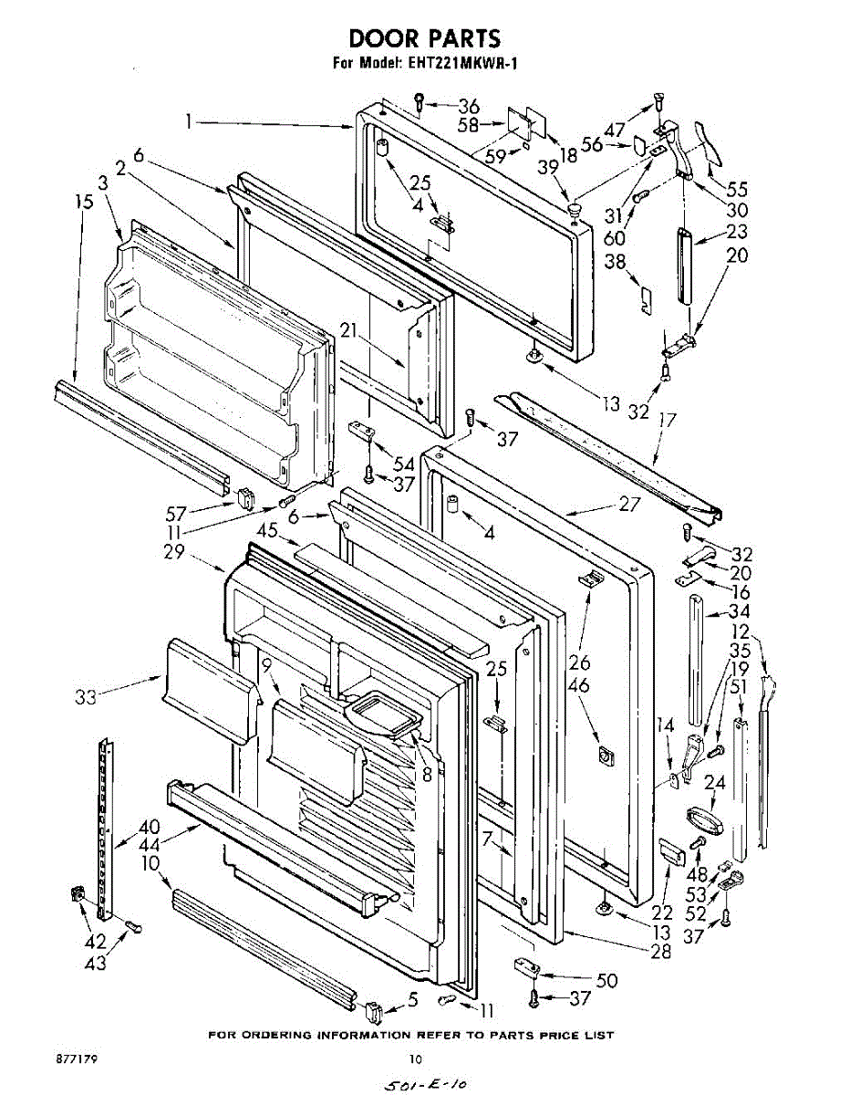 Parts for Whirlpool EHT221MKWR1: 10 - Door Parts