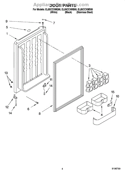 Parts for Whirlpool EL05CCXMQ00: 04 - Door Parts