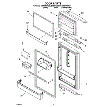 The Door Shelf Bin is an OEM part for Whirlpool refrigerators. It provides organized storage on the refrigerator door, allowing quick access to frequently used items like eggs, butter, or condiments.