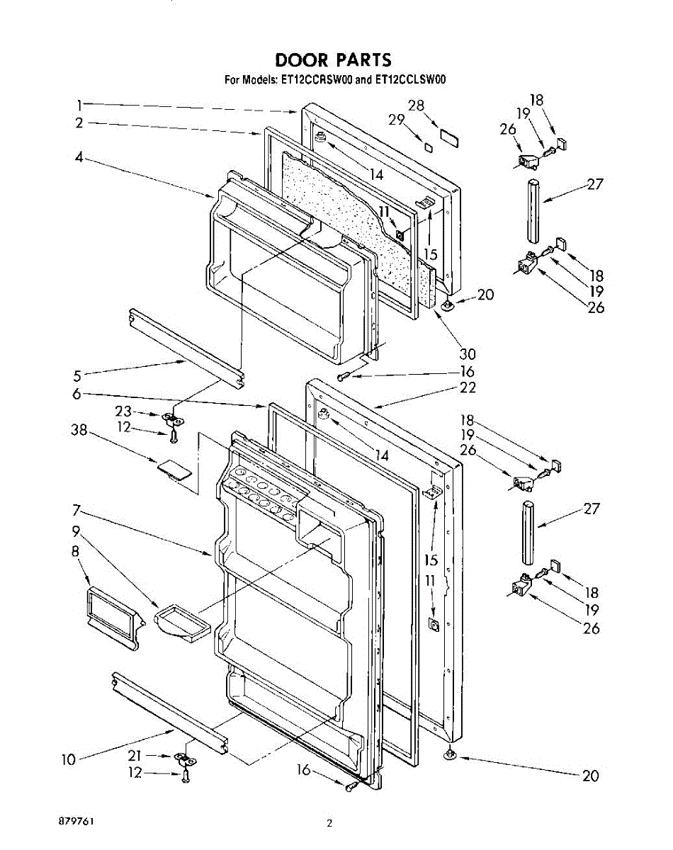 This screw is used to secure the handle end cap to the center of the door. The screw size measures 8-18 x 1/2 inches.