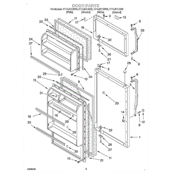 Parts for Whirlpool ET14JKXJW00: 02 - Door Parts