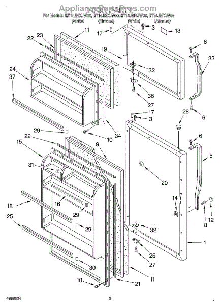 Parts for Whirlpool ET14JMYJW00: 02 - Door Parts