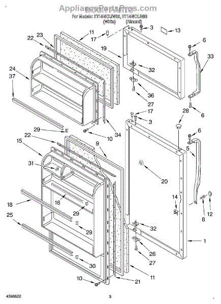 Parts for Whirlpool ET14NKXJW00: 02 - Door Parts