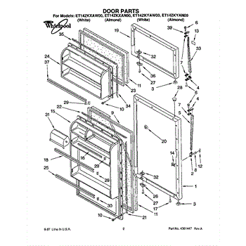Parts for Whirlpool ET14ZKYAW00: 01 - Door Parts
